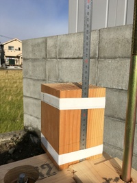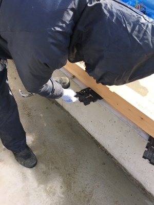 土台と基礎パッキンの間に調整板を挟んで高さをそろえていきます。