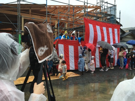 雨でしたが、昨日は入社して(約7ケ月で)3度目のお餅投げ。