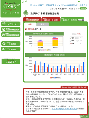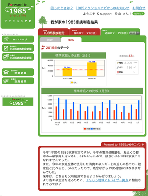 「1985アクションとは、家庭でのエネルギー消費量を賢く減らして、現在の約半分、