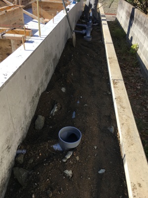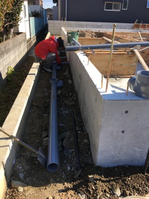 外回りの配管は、工事の終盤で足場が外れた後、施工する場合もあり、