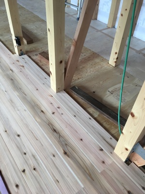 柱と杉板が、きれいにぴったりんこ♪(杉板に平行な柱の面です)