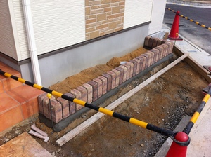 レンガで、花壇を作ってます。