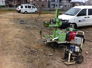 手前の大きな機械がスウェーデン式サウンディング試験。