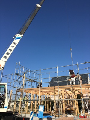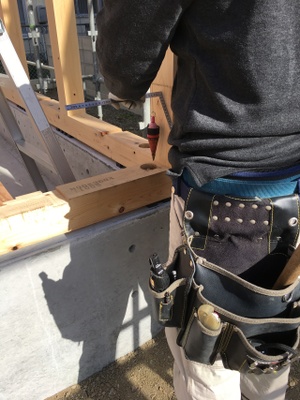 こちらは、さげ振りで柱がまっすぐ立っているか確認の作業です。