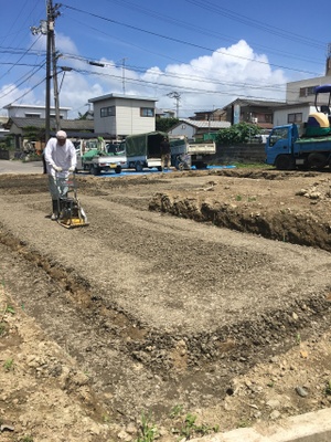 現在、掘削・砕石敷き込み作業中です。