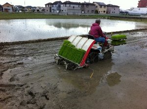 手伝いといっても、苗を田んぼにまくばりしたりと簡単なものですが。。。